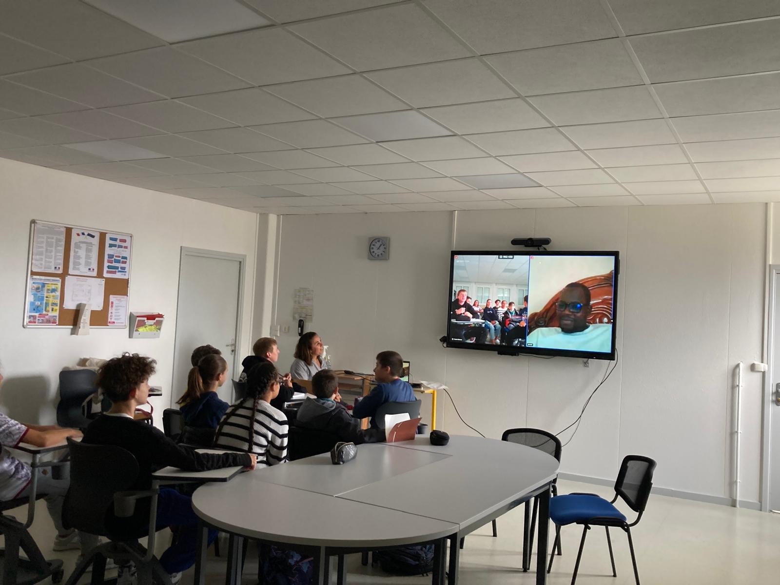 Le jour J, les ados se rassemblent dans une salle de réunion de leur collège, les yeux brillants d’excitation. C’est un peu comme une aventure en soi : l’occasion de se connecter avec un autre monde, d’échanger avec des jeunes qui vivent à des milliers de kilomètres d’ici. La visio était prévue pour 13 h, mais dès 12 h 45, tout le monde est déjà devant l’écran. Les ordinateurs sont allumés, les micros testés, les caméras vérifiées. Il ne manque plus qu’Abdoulaye.