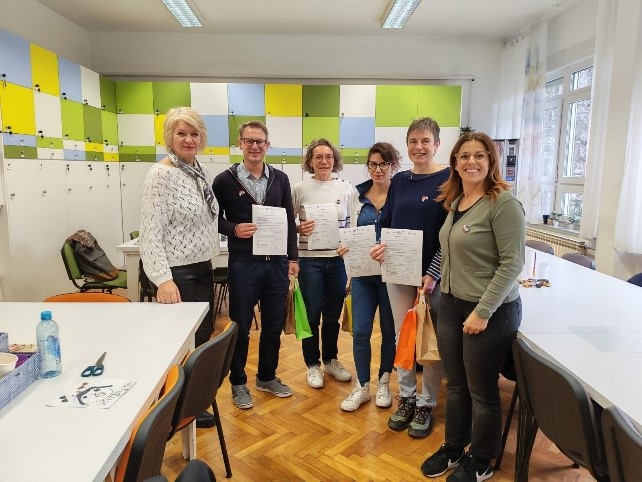 Les enseignants français ont assisté à des séances variées (mathématiques, sciences, anglais, EPS, technologie/informatique) et partagé les temps informels avec leurs collègues croates. Ils ont notamment découvert une organisation scolaire originale : en raison du manque d’espace, les élèves sont accueillis en deux rotations (8h-13h15 et 13h20-19h15), chaque classe alternant chaque semaine.